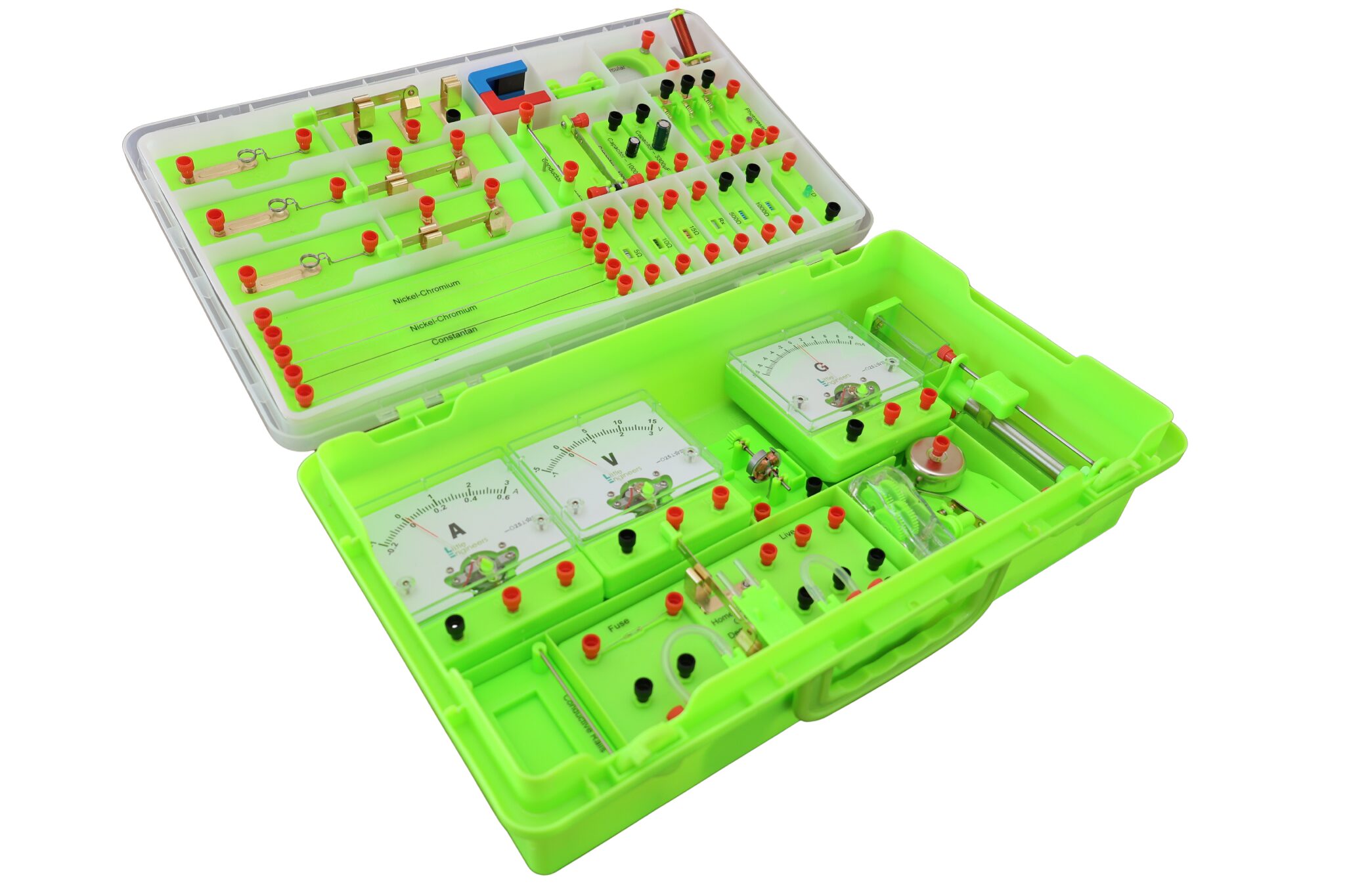 Build circuits: electromagnets, motors & generators, induction, Ohm’s law, series/parallel, RC, photoresistors, Joule’s law and more.